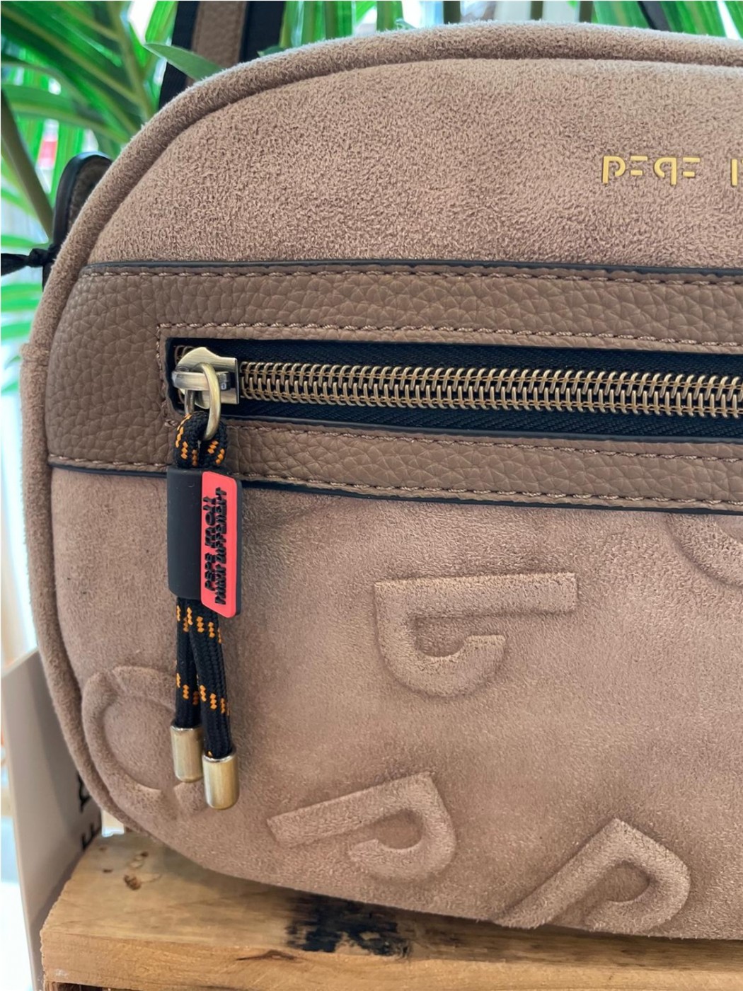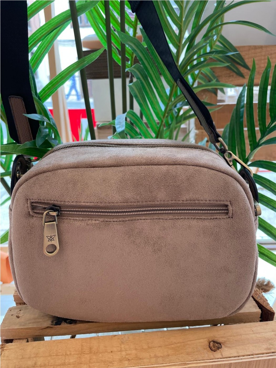 Diseño tipo ante ? Correa ancha con toque deportivo ? Bolsillos exteriores con detalles cuidados ? Interior amplio y compartimentado ? Perfecto para un look casual con personalidad Medidas: Alto: 18 cm Ancho: 26 cm Fondo: 12 cm