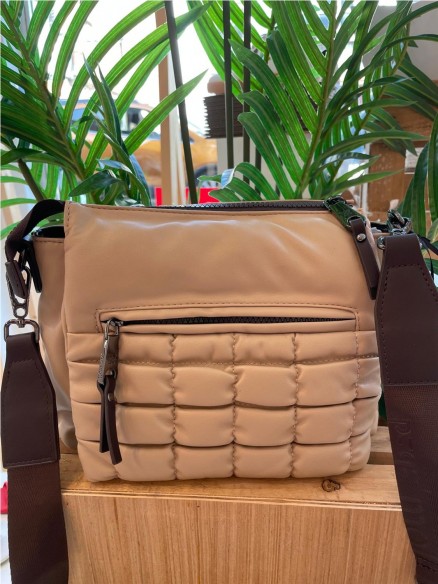 Diseño acolchado con forma redondeada y acabado suave. ? Compartimento principal con cremallera para mayor seguridad. ? Bolsillo exterior trasero con cremallera para tener a mano lo imprescindible. ? Asa regulable con detalles en contraste para llevarlo cruzado o al hombro. Medidas: Alto: 21 cm Ancho: 29 cm Fondo: 14 cm