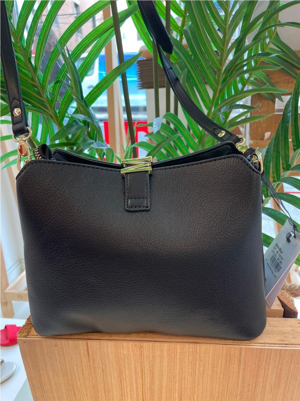 BOLSO DE HOMBRO CON LETRA MIMI-MUA LARGO: 23,5cm PROFUNDIDAD: 10,5cm ALTURA: 19cm COMPOSICIÓN: 100% PU - POLIURETANO