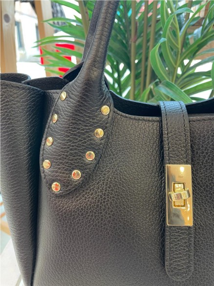Bolso piel con detalles de tachuelas , interior con una bolsa de textil para meter las cosas