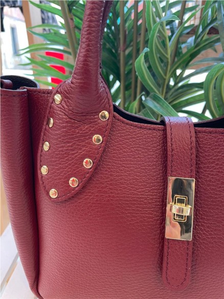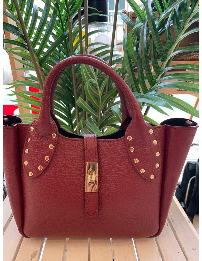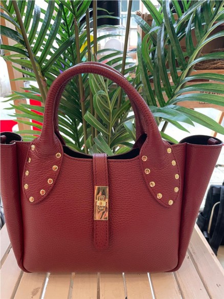 Bolso piel con detalles de tachuelas , interior con una bolsa de textil para meter las cosas