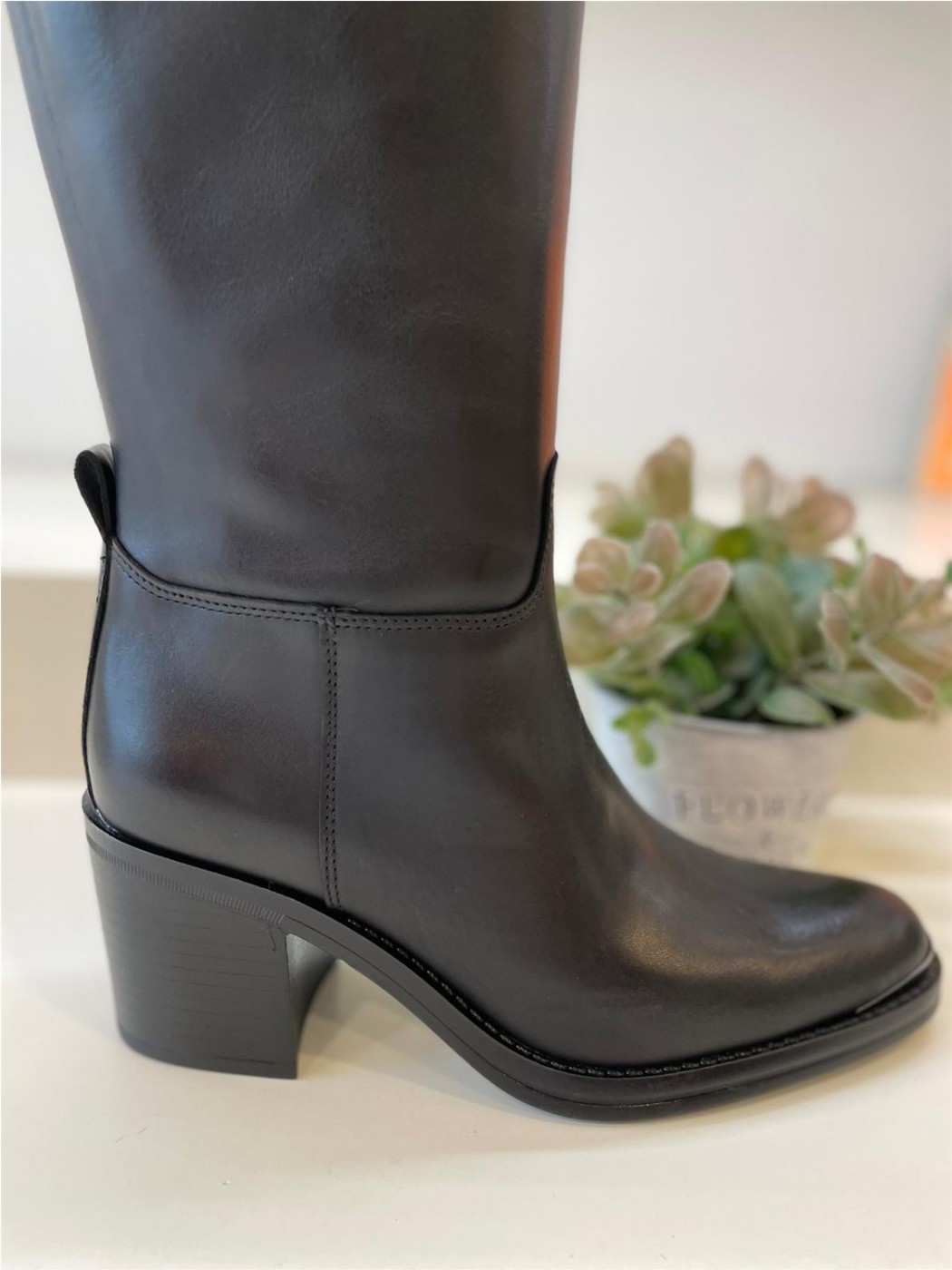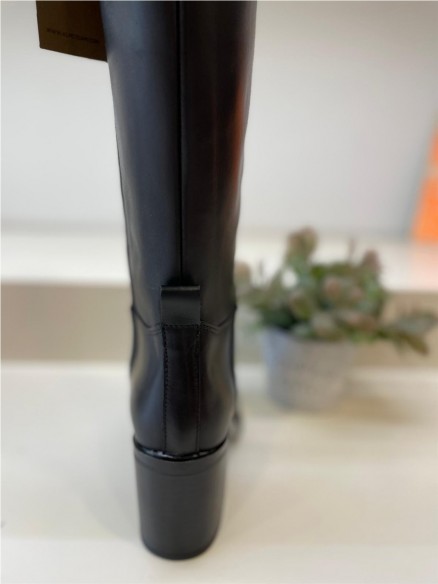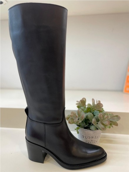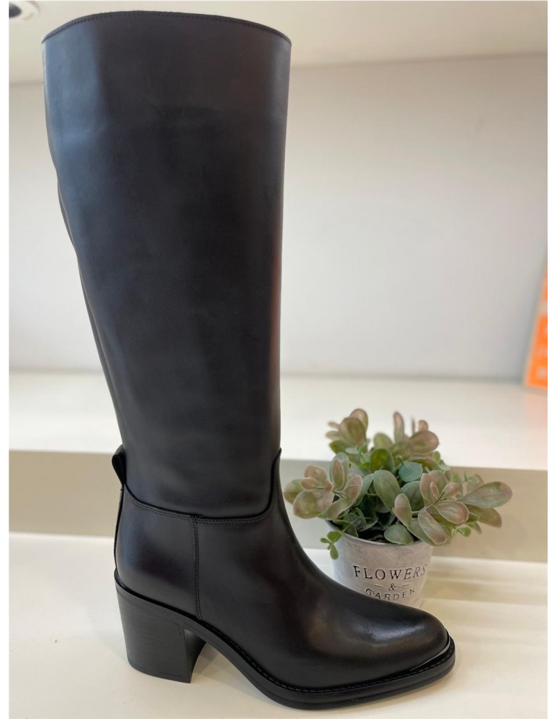 Bota para mujer ALPE en piel de becerro color negro, tacón de 7 cm, suela antideslizante,con cierre y caña alta.Altura hasta suelo 44.5cm Composición exterior: piel. Composición interior: textil. Plantilla: textil.