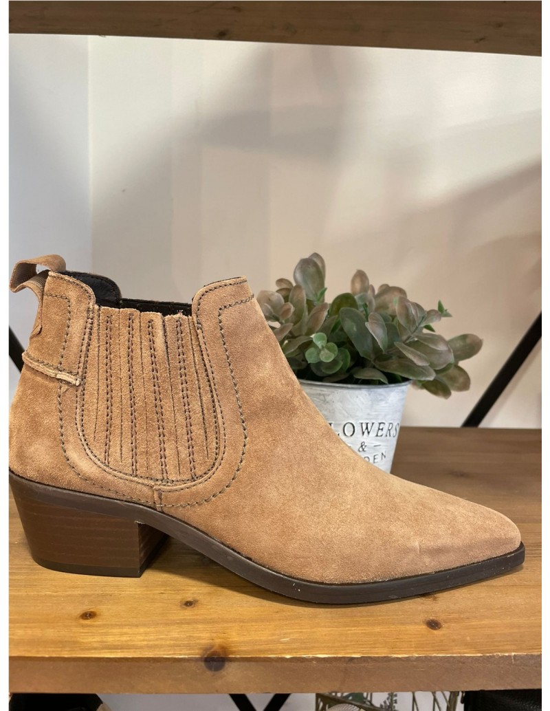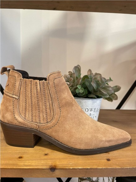 Botín para mujer fabricado en piel (baby silk) con tacón de 5 cm, suela antideslizante y puntera afilada, sin cierre , elasticos a los dos laterales y caña baja. Composición exterior: piel. Composición interior: textil. Plantilla: textil.