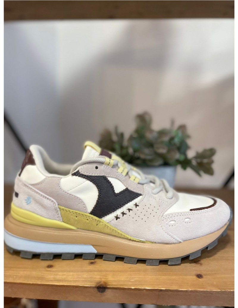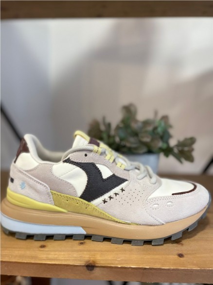 Sneakers para mujer confeccionadas en nylon con piezas en serraje al tono y detalles sintéticos. Cierre mediante cordones redondos al tono. Suela bicolor y patín con grabados del logo en relieve antideslizante que favorece un mejor agarre. Estabilizador en el talón. Incluyen además una plantilla extraíble ergonómica y muy confortable.