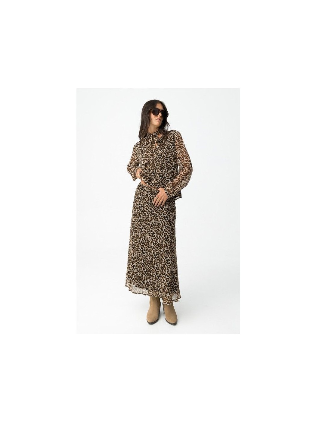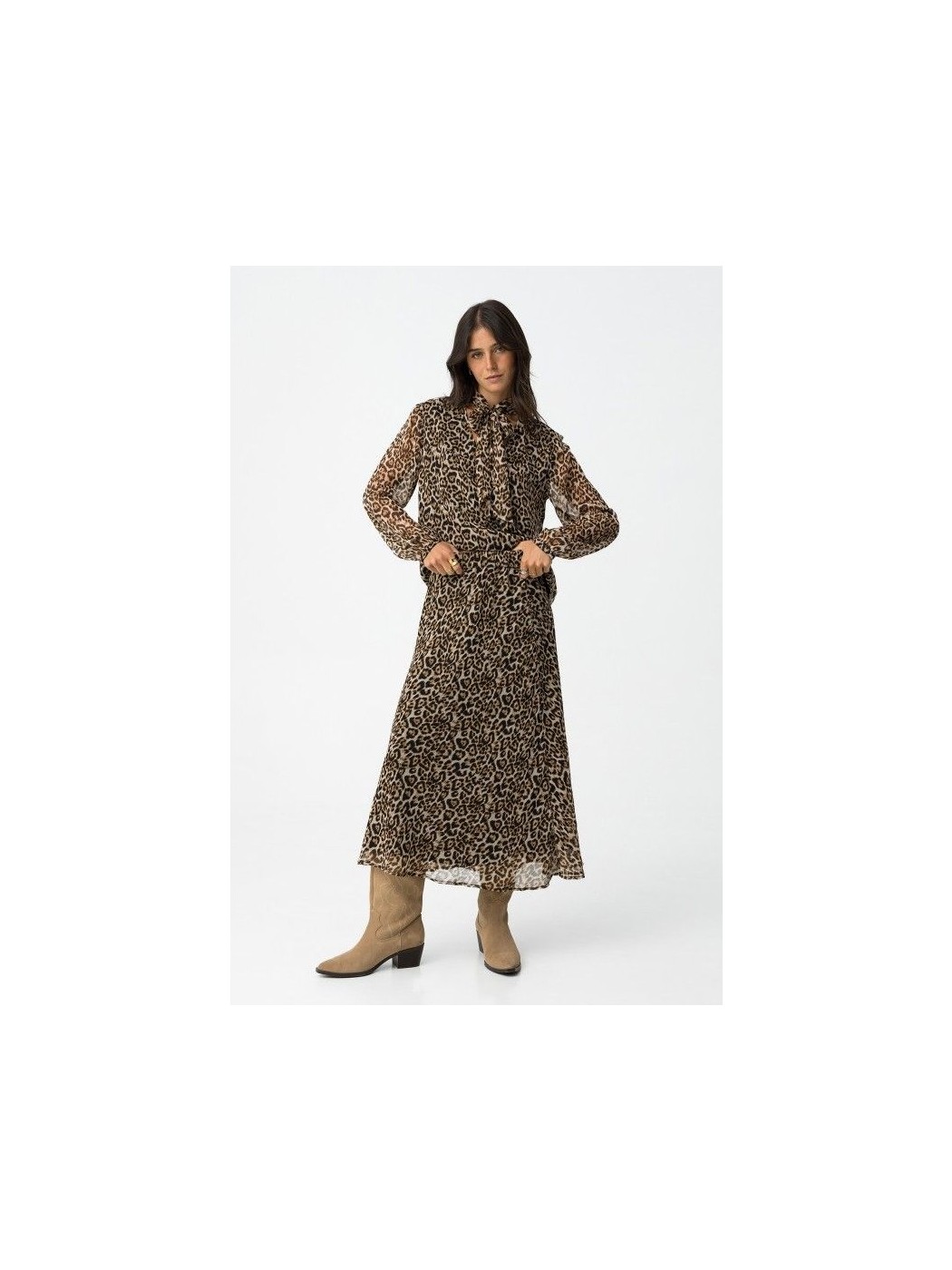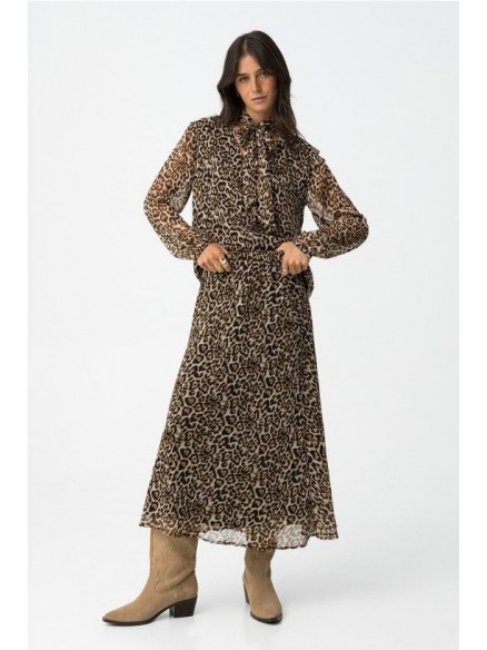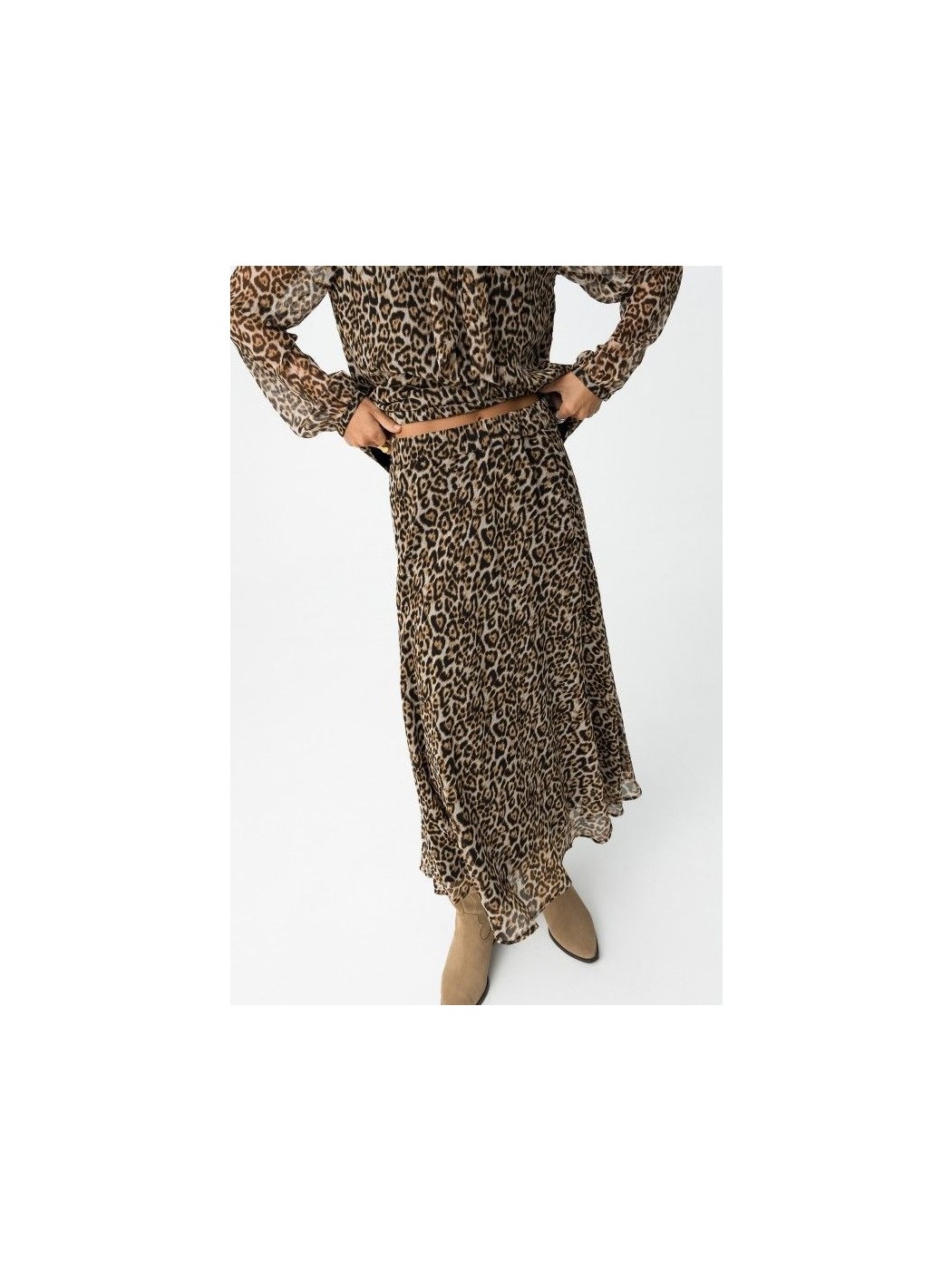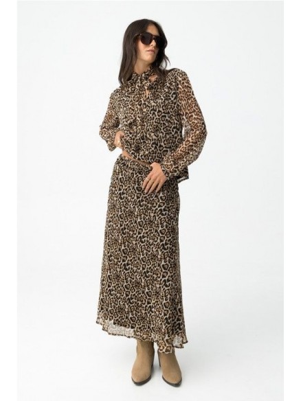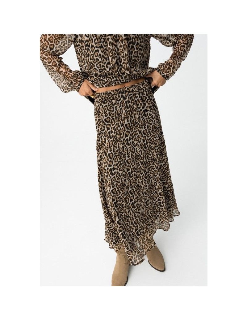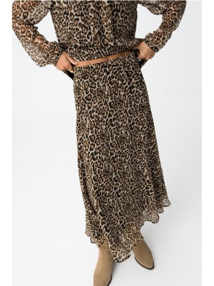 Falda dálmata midi evasé con estampado de leopardo, cintura elástica y forro.