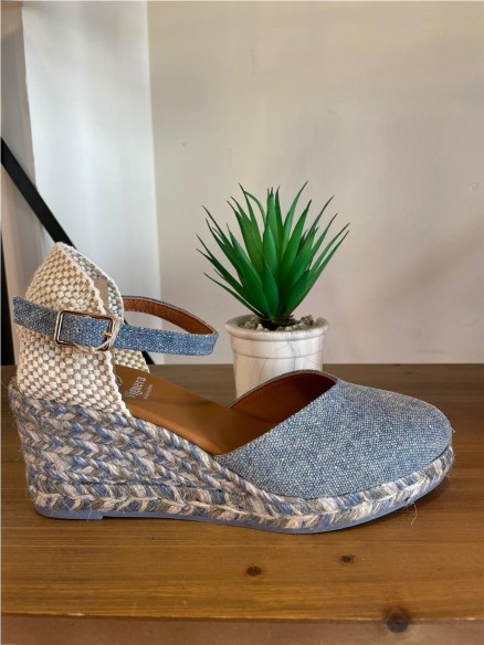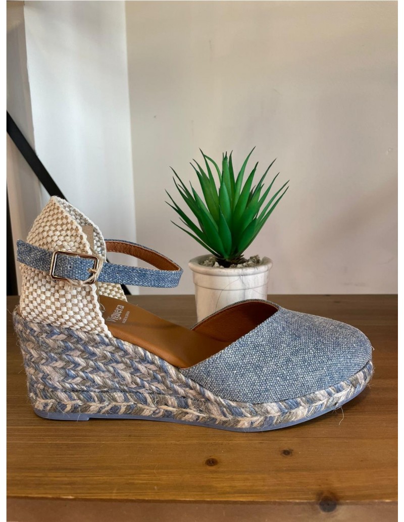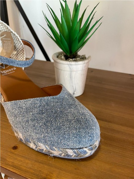 Alpargata de la marca VIGUERA con planta de piel, tejido jeans