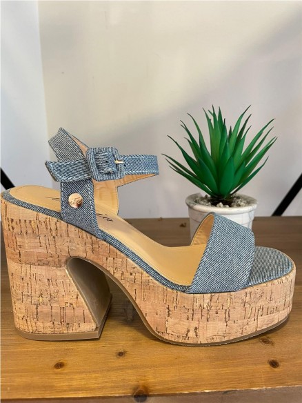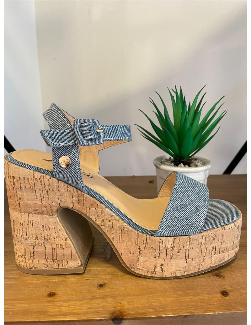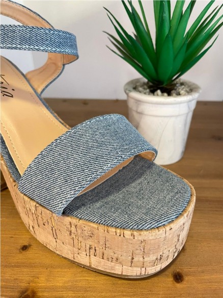 Sandalia plataforma de la marca ISTERIA con tejido jeans