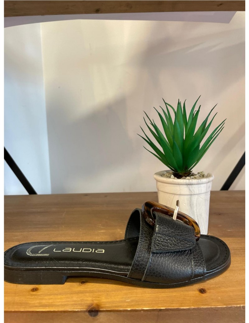 Sandalia plana de piel con pala y detalle de hebilla