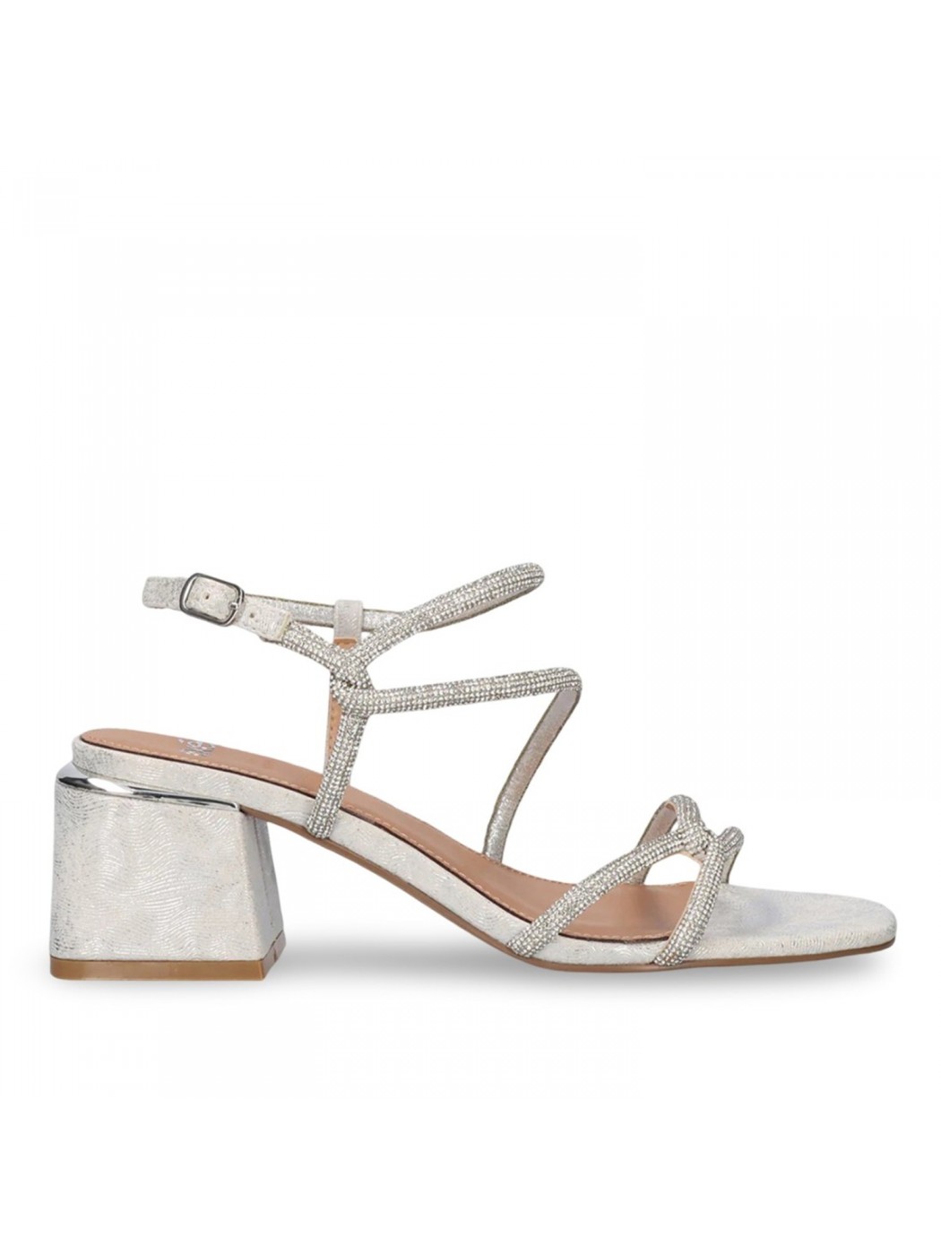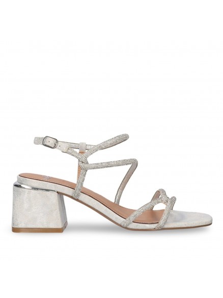SANDALIA EXE TACON BAJO PLATA