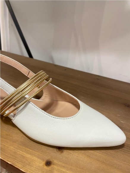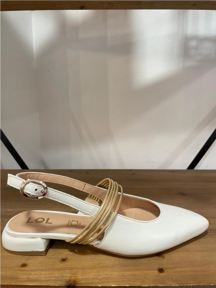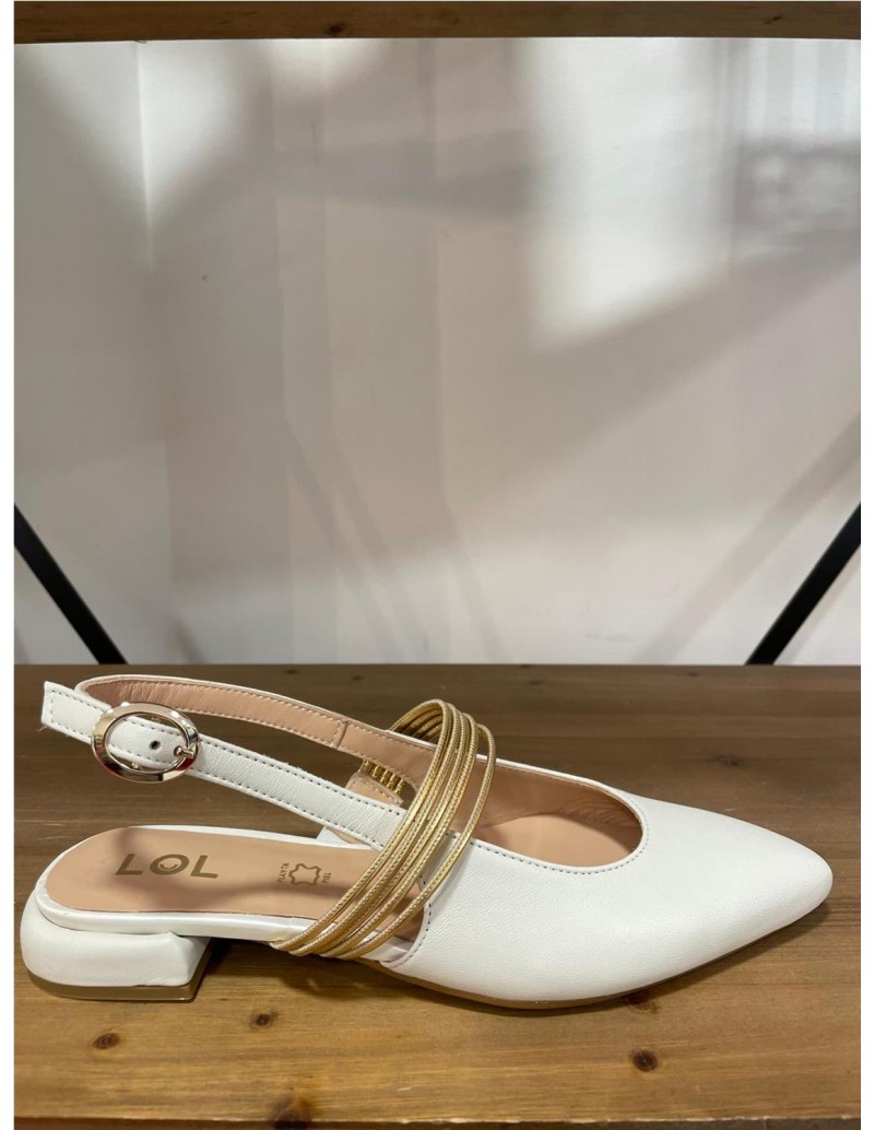 Bailarinas destalonadas de piel de la marca Lol shoes. Combinadas color hielo y oro
