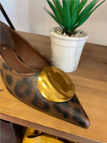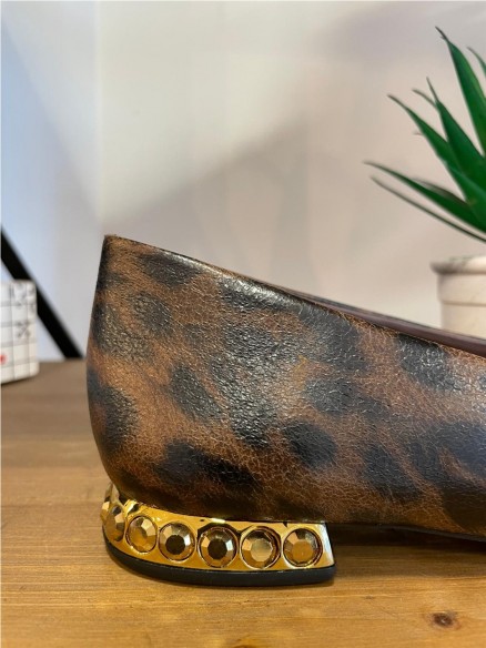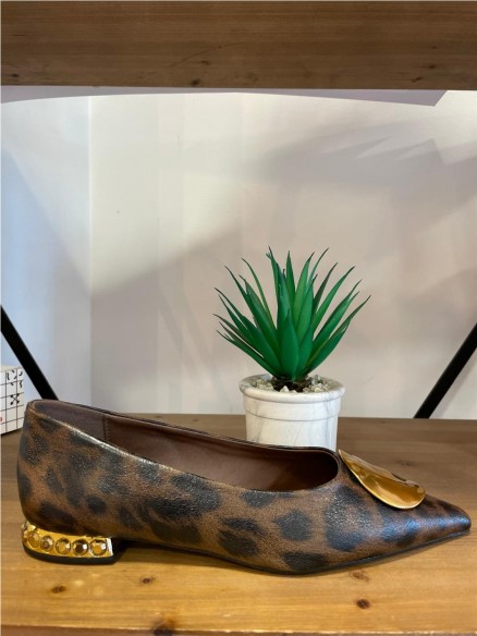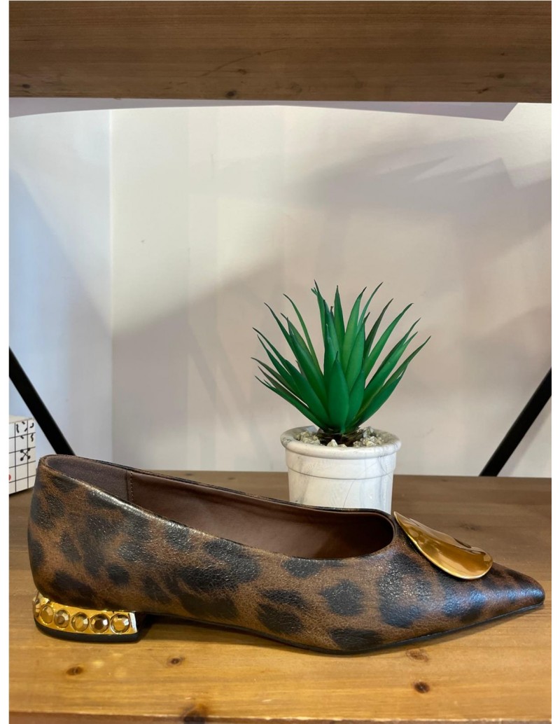 Bailarinas con estampado de leopardo y adorno dorado. Corte: Sintético Plantilla: Leather Suela: Sintético Tacón: 2 cm